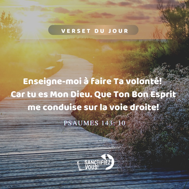 Enseigne-moi à faire Ta volonté! Car Tu es Mon Dieu. Que Ton Bon Esprit me conduise sur la voie droite! Psaumes 143:10
