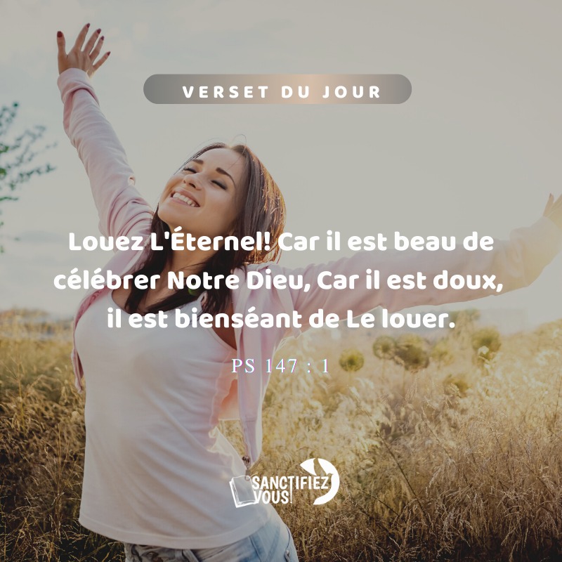 Louez L’Ăternel! Car il est beau de cĂ©lĂ©brer Notre Dieu, car il est doux, il est biensĂ©ant de Le louer. Psaumes 147:1