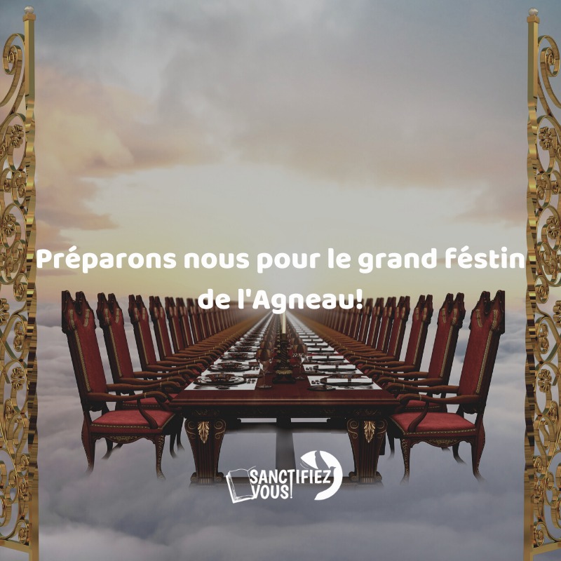 Conseils : Prenez le temps de vous préparer chaque jour pour cette grande fête afin de paraître glorieuse, sans tâche, ni ride, ni rien de semblable, mais sainte et irréprochable afin d’être qualifié(e) pour participer aux noces de L’Agneau.
