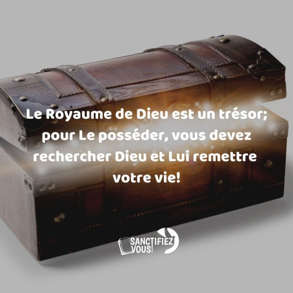 Sanctifiez-vousSans la SANCTIFICATION, personne ne verra Le Seigneur (Hébreux 12 v.14) Méditation du jour Sujet : Le Royaume de Dieu est un trésor caché. 🎶[Écouter] Verset : Matthieu 13:44 - Le royaume des cieux est encore semblable à un trésor caché dans un champ. L'homme qui l'a trouvé le cache; et, dans sa joie, il... Lire la Suite →