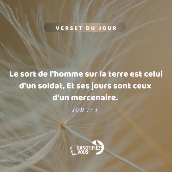 Le sort de l'homme sur la terre est celui d'un soldat, et ses jours sont ceux d'un mercenaire. Job 7:1 Vèsè jounen an 📖Lavi yon nonm sou latè, se tankou sèvis militè l'ap fè. Li tankou moun k'ap vann jounen! Jòb 7:1
