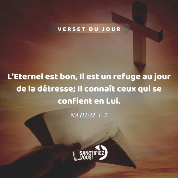 L'Éternel est bon, Il est un refuge au jour de la détresse; Il connaît ceux qui se confient en Lui. Nahum 1:7 Vèsè jounen an 📖Senyè a gen bon kè. Jou malè, se Li ki pwoteje pèp Li. Li pran swen tout moun ki vin kache anba zèl Li. Nawoum 1:7