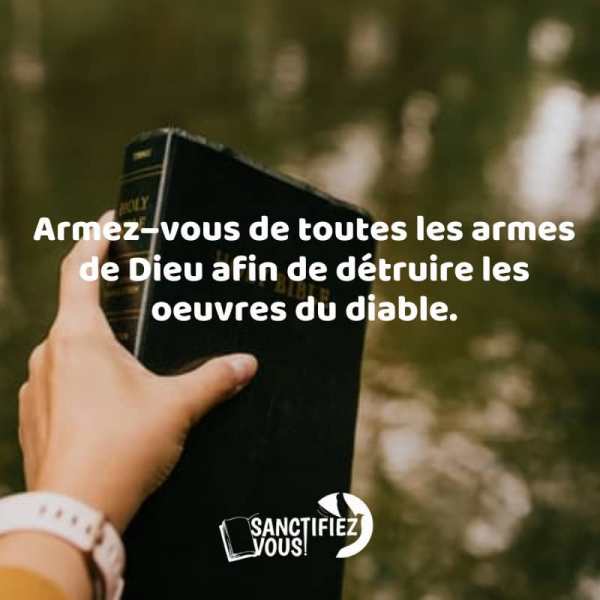 Sanctifiez-vousSans la SANCTIFICATION, personne ne verra Le Seigneur (Hébreux 12 v.14) Méditation du jour Sujet : Détruire les œuvres du diable. 🎶[Écouter] Verset : 1 Jean 3:8 - Celui qui pèche est du diable, car le diable pèche dès le commencement. Le Fils de Dieu a paru afin de détruire les œuvres du diable. Leçon... Lire la Suite →