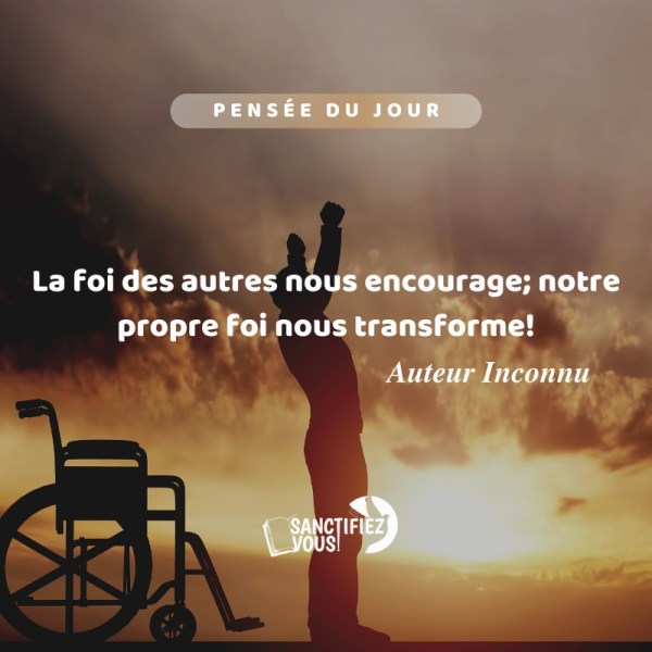 La foi des autres nous encourage ; notre propre foi nous transforme. Auteur inconnu Panse pou jounen anKonfyans lòt moun ba nou kouraj ; konfyans pa nou fè nou vin yon lòt moun. Otè enkoni