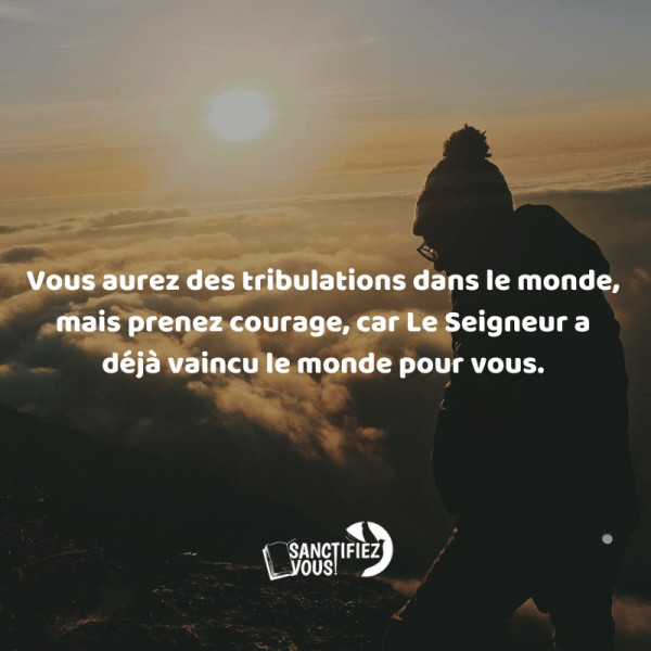 Sanctifiez-vousSans la SANCTIFICATION, personne ne verra Le Seigneur (Hébreux 12 v.14) Méditation du jour Sujet : Chrétiens, prenez courage! 🎶[Écouter] Verset : Jean 16:33 - Je vous ai dit ces choses, afin que vous ayez la paix en Moi. Vous aurez des tribulations dans le monde; mais prenez courage, J'ai vaincu le monde. Leçon :... Lire la Suite →