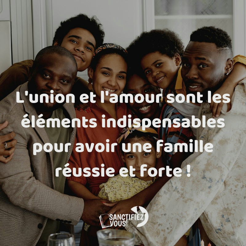 Ainsi, pour être ou pour avoir une famille forte, solide, tous les membres doivent s’unir pour chercher la volonté de Dieu, et aussi le bonheur de chacun des membres. Dans une famille divisée, Dieu n’est pas présent, car Dieu est présent là où deux ou trois sont unis (Matt. 18:20). Le Royaume de Dieu fonctionne parfaitement bien parce qu’il y a une unité dans la Trinité. Jésus a déclaré en Jean 10:30 « Moi et le Père nous sommes UN. » Le Père L’aime, et Lui, Il aime Le Père. Telle est donc la base pour la réussite d’une famille : l’union et l’amour.
