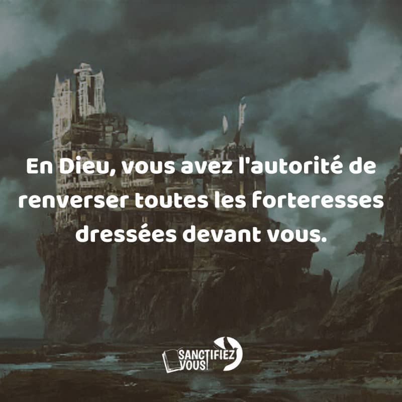 Conseils : Apportez à Dieu toutes sortes de forteresses qui sont dans votre vie car Il dit dans Job 26:12, « par Sa force Il soulève la mer, par Son intelligence Il en brise l’orgueil. » Ainsi, Il peut vous aider à briser votre forteresse.