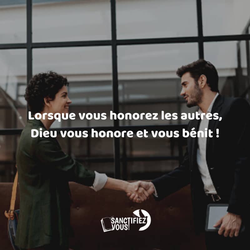 À retenir : Quand vous honorez les autres, Dieu vous honore et vous bénisse. En tant que croyants, nous devons reconnaître la dignité conférée par Dieu à tout homme et les respecter.