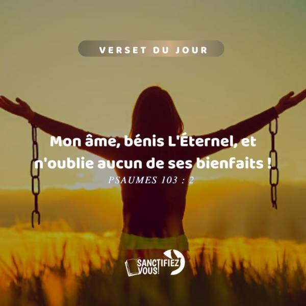 Mon âme, bénis L'Éternel, et n'oublie aucun de ses bienfaits ! Psaumes 103:2 Vèsè jounen an 📖Wi, kite m' di Senyè a mèsi. Mwen pa dwe janm bliye tout byen Li fè pou mwen. Sòm 103:2