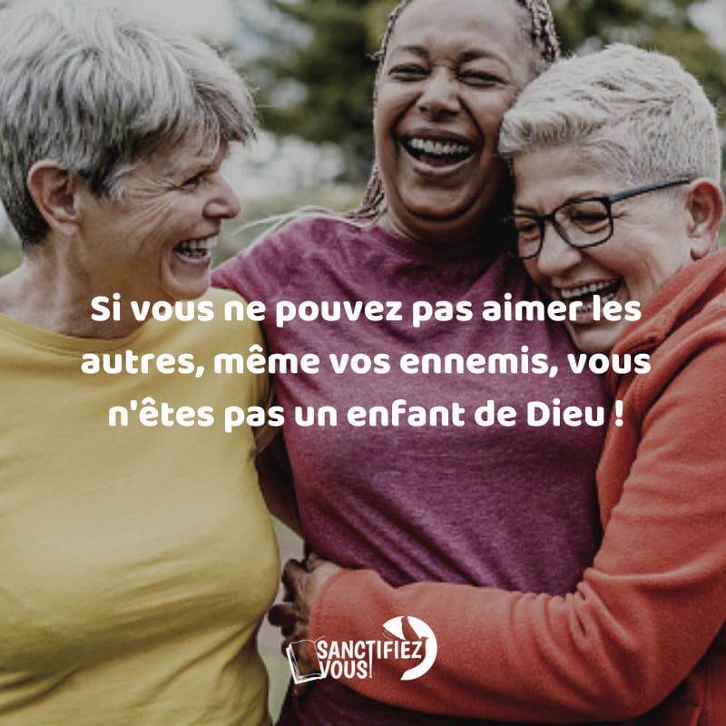 Ă retenir : Si nous n’avons pas de l’amour pour les autres, mĂȘme pour nos ennemis, nous ne sommes pas des enfants de Dieu, car JĂ©sus a dit, c’est en ayant de l’amour les uns pour les autres que le monde reconnaĂźtra que nous sommes Ses disciples (Jean 13:34-35).