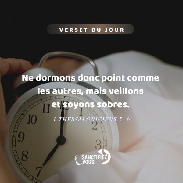 Ne dormons donc point comme les autres, mais veillons et soyons sobres. 1 Thessaloniciens 5:6 Vèsè jounen an 📖Se sak fè, piga nou dòmi tankou lòt yo. Pa kite dòmi pran nou. Kenbe tèt nou anplas. 1 Tesalonik 5:6