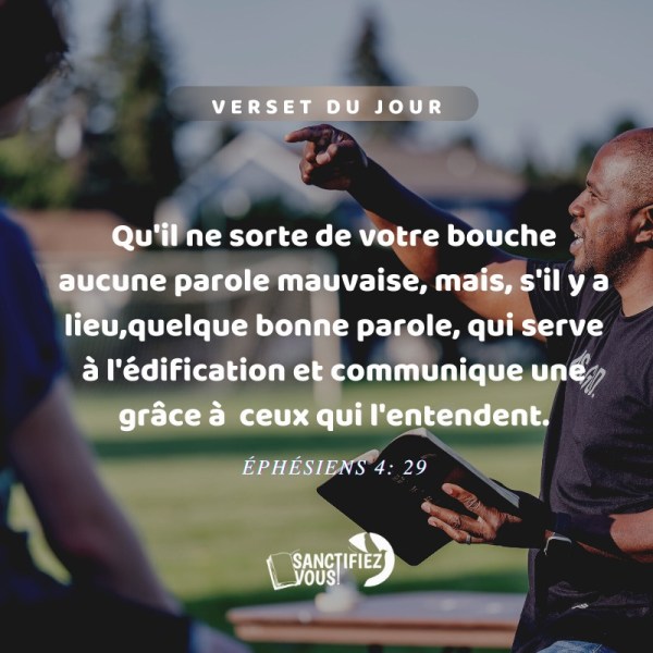 Qu'il ne sorte de votre bouche aucune parole mauvaise, mais, s'il y a lieu, quelque bonne parole, qui serve à l'édification et communique une grâce à ceux qui l'entendent. Éphésiens 4:29 Vèsè jounen an 📖Pa kite ankenn move pawòl soti nan bouch nou. Pale bon koze ki ka ede lòt yo grandi nan konfyans BonDye,... Lire la Suite →