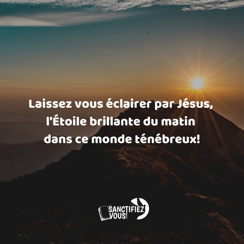 Conseils : Si vous regardez aux ténèbres de la vie, vous penserez qu’il ne fera jamais jour, mais si vous regardez l’Étoile qui brille vous resterez confiant que le jour viendra. Alors, faites le choix de vous laisser éclairer par l’éclat de Jésus, notre Étoile brillante du matin.