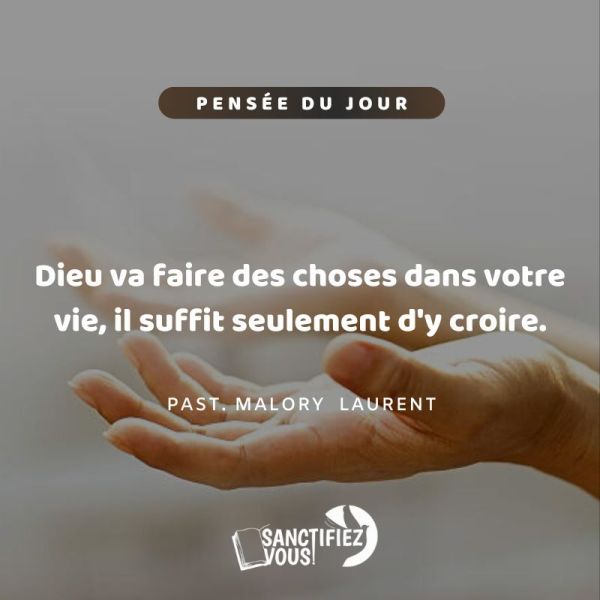 Dieu va faire des choses dans votre vie, il suffit seulement d'y croire. Past. Malory LAURENT Panse pou jounen anBonDye pral fè anpil bagay nan lavi w, ou gen pou w kwè sa sèlman. Past. Malory LAURENT