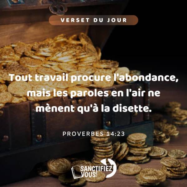 Tout travail procure l'abondance, mais les paroles en l'air ne mènent qu'à la disette. Proverbes 14:23 Vèsè jounen an 📖Travay, w'a jwenn tout sa ou bezwen. Rete chita ap pale anpil ap rann ou pòv. Pwovèb 14:23