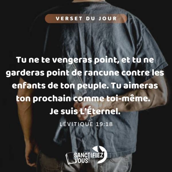 Tu ne te vengeras point, et tu ne garderas point de rancune contre les enfants de ton peuple. Tu aimeras ton prochain comme toi-même. Je suis L'Éternel. Lévitique 19:18 Vèsè jounen an 📖Piga nou tire revanj sou pesonn. Piga nou kenbe moun menm ras ak nou nan kè, men se pou nou renmen yo tankou... Lire la Suite →