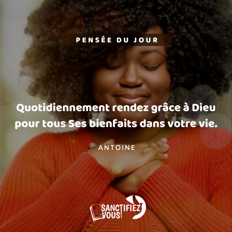 Quotidiennement rendez grâce à Dieu pour tous Ses bienfaits dans votre vie. Antoine
