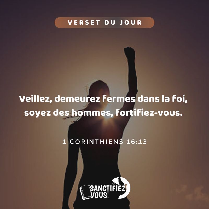 Veillez, demeurez fermes dans la foi, soyez des hommes, fortifiez-vous. 1 Corinthiens 16:13