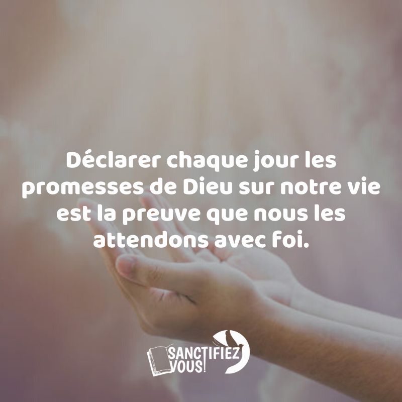 Conseils : Depuis la fondation du monde jusqu’à aujourd’hui les promesses de Dieu n’ont jamais failli et elles ne failliront jamais. Alors, déclarez-les à répétition sur votre vie, ainsi vous prouverez que vous les attendez avec foi et Dieu sera glorifié.
