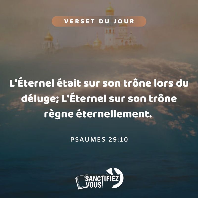 L’Ăternel Ă©tait sur son trĂŽne lors du dĂ©luge; L’Ăternel sur son trĂŽne rĂšgne Ă©ternellement. Psaumes 29:10
