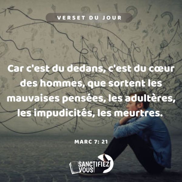 Car c'est du dedans, c'est du cœur des hommes, que sortent les mauvaises pensées, les adultères, les impudicités, les meurtres. Marc 7:21 Vèsè jounen an 📖Se nan kè yon moun, se anndan li tout move lide soti : lide fè ou fè tout move bagay, li fè ou vòlè, li fè ou touye moun. Mak... Lire la Suite →