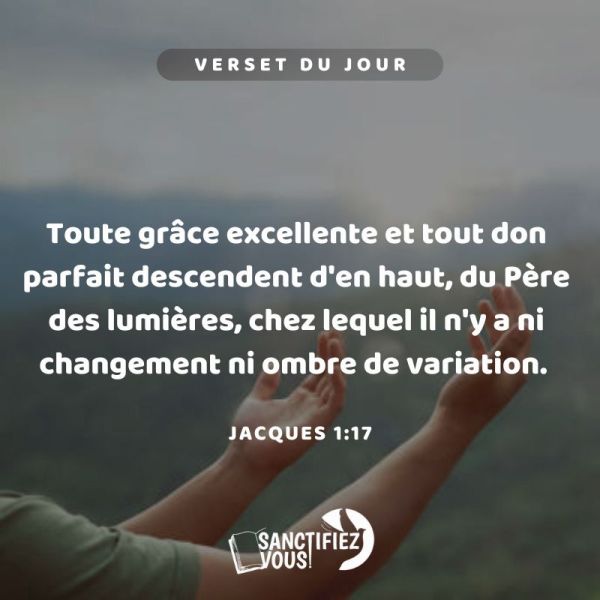 Toute grâce excellente et tout don parfait descendent d'en haut, du Père des lumières, chez lequel il n'y a ni changement ni ombre de variation. Jacques 1:17 Vèsè jounen an 📖Tout pi bèl favè, tout pi bon kado nou resevwa, se anwo nan syèl la yo soti, nan men BonDye ki kreye tout limyè. BonDye... Lire la Suite →