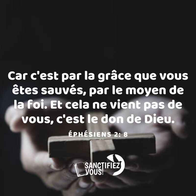 Car c’est par la grâce que vous êtes sauvés, par le moyen de la foi. Et cela ne vient pas de vous, c’est le don de Dieu. Éphésiens 2:8