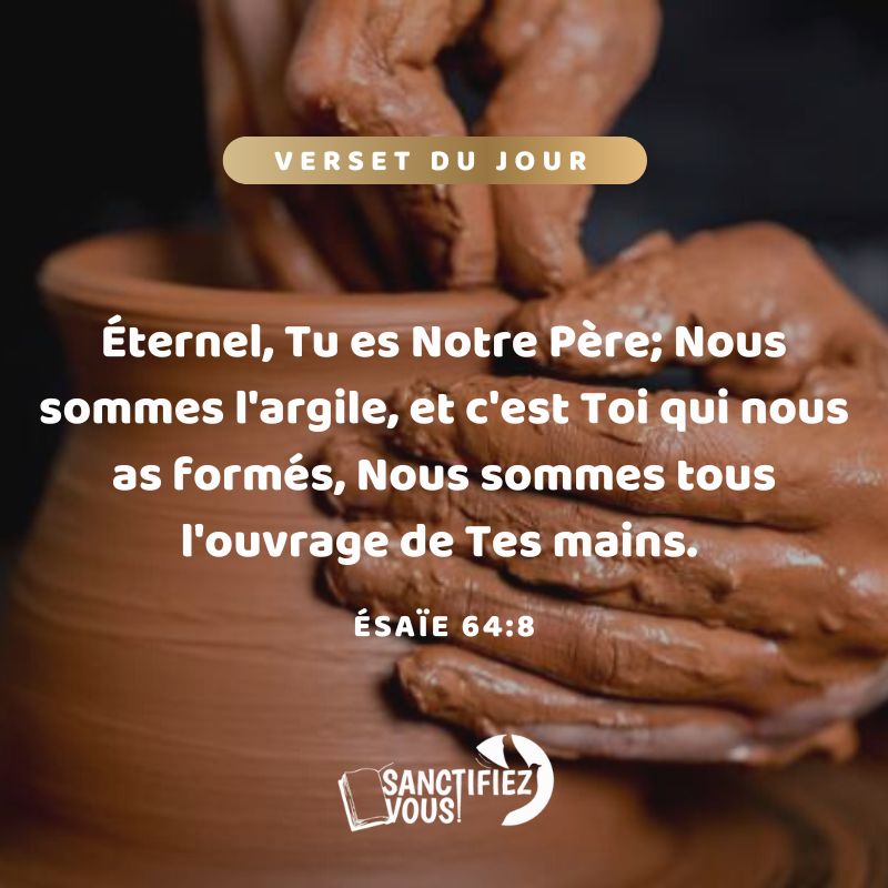 Ăternel, Tu es Notre PĂšre; nous sommes l’argile, et c’est Toi qui nous as formĂ©s, nous sommes tous l’ouvrage de Tes mains. ĂsaĂŻe 64:8