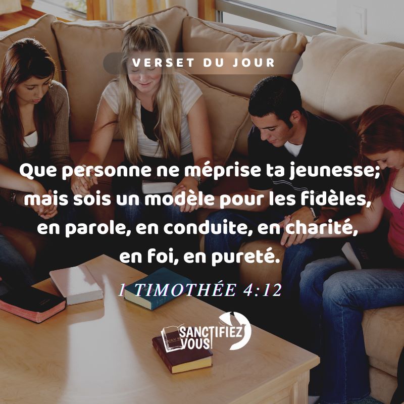 Que personne ne méprise ta jeunesse; mais sois un modÚle pour les fidÚles, en parole, en conduite, en charité, en foi, en pureté. 1 Timothée 4:12