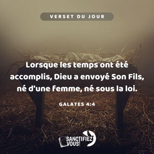 Lorsque les temps ont été accomplis, Dieu a envoyé Son Fils, né d'une femme, né sous la loi. Galates 4:4 Vèsè jounen an 📖Lè lè a rive, BonDye te voye pwòp Pitit li. Li soti nan vant yon fanm, Li viv anba lalwa jwif yo. Galat 4:4