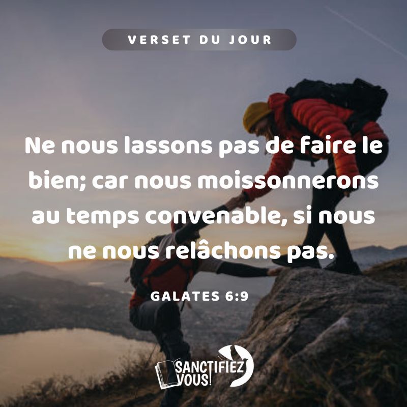 Ne nous lassons pas de faire le bien; car nous moissonnerons au temps convenable, si nous ne nous relĂąchons pas. Galates 6:9