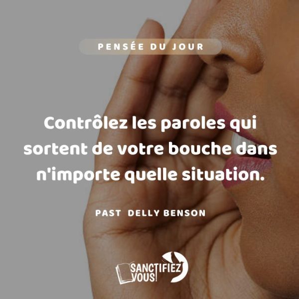 Contrôlez les paroles qui sortent de votre bouche dans n'importe quelle situation. Past. DELLY Benson Panse pou jounen anNan nenpòt sitiyasyon toujou gen kontwòl tout pawòl kap sòti nan bouch ou. Past. DELLY Benson