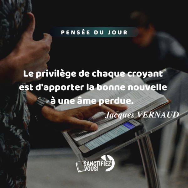 Le privilège de chaque croyant est d'apporter la bonne nouvelle à une âme perdue. Jacques VERNAUD Panse pou jounen an 🧠Se yon privilèj pou chak moun ki mete konfyans yo nan BonDye pou pataje bon nouvèl Levanjil la bay nanm ki pèdi. Jacques VERNAUD