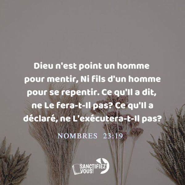 Dieu n'est point un homme pour mentir, ni fils d'un homme pour se repentir. Ce qu'Il a dit, ne Le fera-t-Il pas ? Ce qu'Il a déclaré, ne L'exécutera-t-Il pas ? Nombres 23:19 Bien aimé(e), sachez que Dieu ne ment jamais. Peu importe que les moments que vous traversez dans votre vie changent, Dieu, Lui,... Lire la Suite →