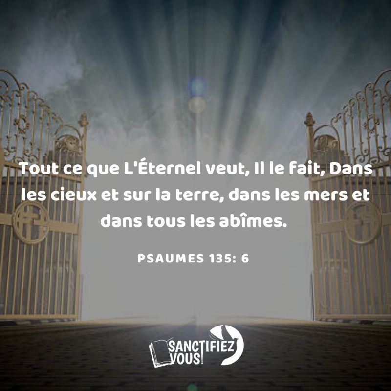 Tout ce que L’Éternel veut, Il le fait, Dans les cieux et sur la terre, Dans les mers et dans tous les abîmes. Psaumes 135:6