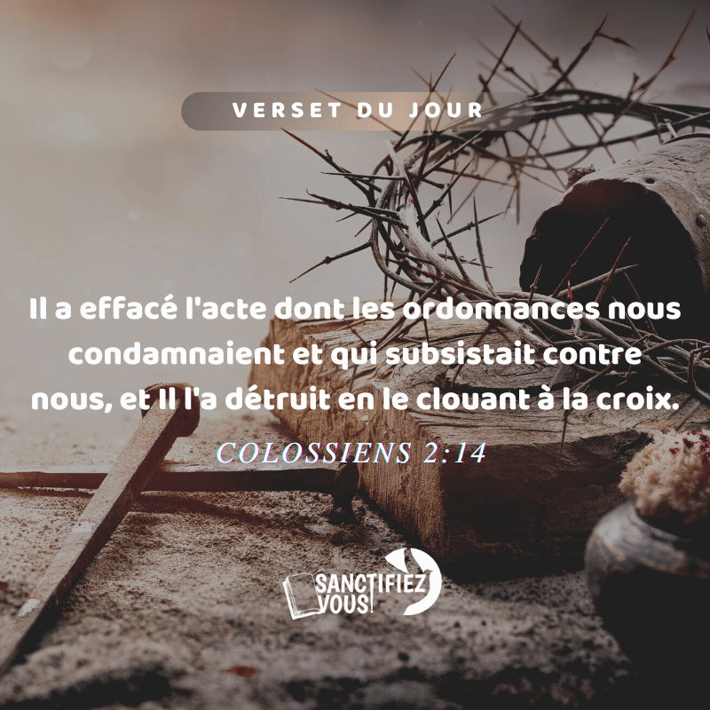 Il a effacĂ© l’acte dont les ordonnances nous condamnaient et qui subsistait contre nous, et Il l’a dĂ©truit en le clouant Ă la croix. Colossiens 2:14