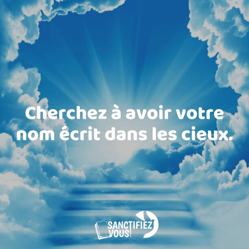 Conseils : Faites en sorte que votre nom soit écrit dans les cieux et non sur la terre afin de vivre éternellement dans la présence de Dieu.