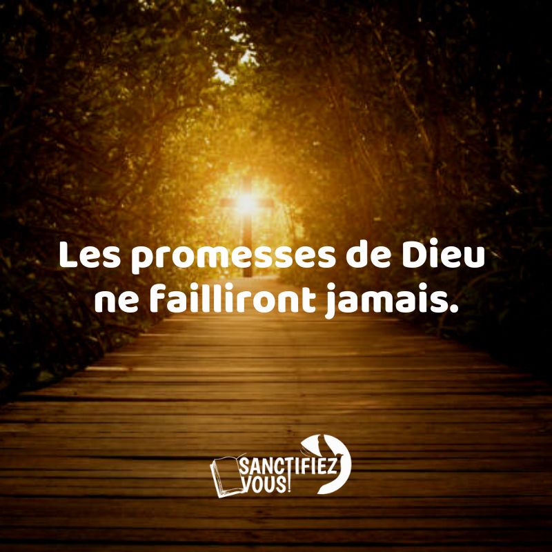 À retenir : Les promesses de Dieu ne failliront jamais. Car, pour ce qui concerne toutes les promesses de Dieu, c’est en Lui qu’est le oui; c’est pourquoi encore l’Amen par Lui est prononcé par nous à la gloire de Dieu. (2 Corinthiens 1:20)