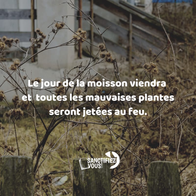 Verset : Matthieu 13:30 – Laissez croître ensemble l’un et l’autre jusqu’à la moisson, et, à l’époque de la moisson, je dirai aux moissonneurs: Arrachez d’abord l’ivraie, et liez-la en gerbes pour la brûler, mais amassez le blé dans mon grenier.