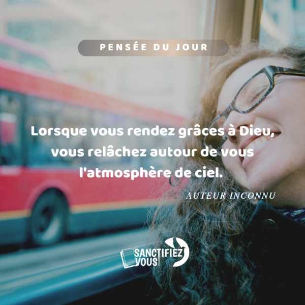 Lorsque vous rendez grâces à Dieu, vous relâchez autour de vous l'atmosphère de ciel. Auteur inconnu Panse pou jounen an 🧠Lè wap di BonDye mèsi, ou pèmèt benediksyon syèl la tonbe sou ou. Otè enkoni