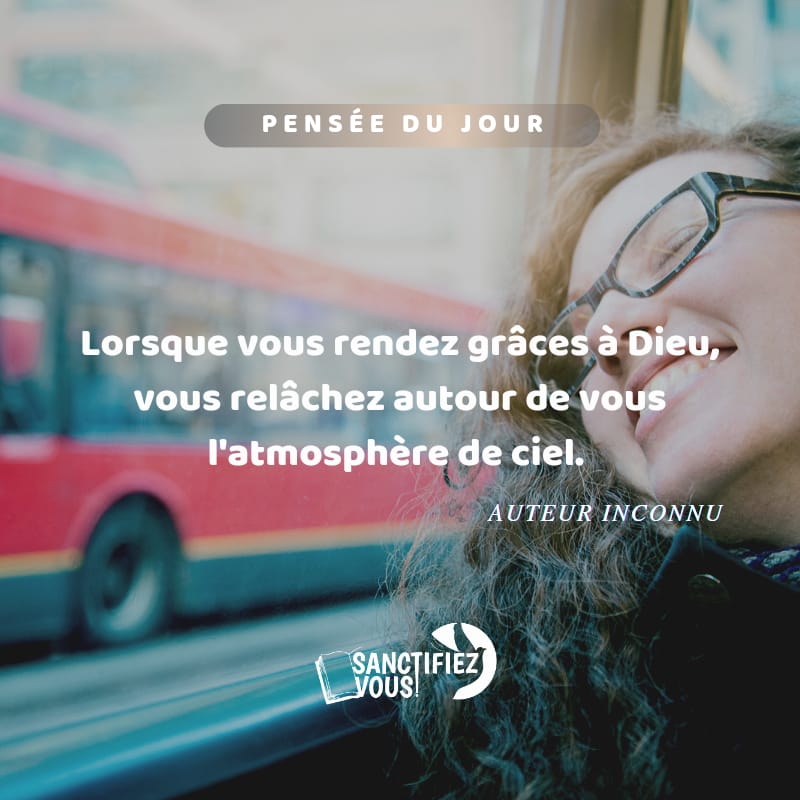 Lorsque vous rendez grĂąces Ă Dieu, vous relĂąchez autour de vous l’atmosphĂšre de ciel. Auteur inconnu