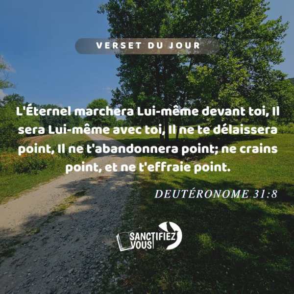 L'Éternel marchera Lui-même devant toi, Il sera Lui-même avec toi, Il ne te délaissera point, Il ne t'abandonnera point; ne crains point, et ne t'effraie point. Deutéronome 31:8 Vèsè jounen an 📖Senyè a va pran devan ou, L'a kanpe la avè ou. Li p'ap janm lage ou, Li p'ap kite ou pou kont ou :... Lire la Suite →