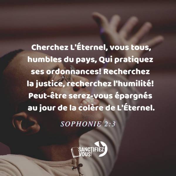 Cherchez L'Éternel, vous tous, humbles du pays, qui pratiquez ses ordonnances ! Recherchez la justice, recherchez l'humilité ! Peut-être serez-vous épargnés au jour de la colère de L'Éternel. Sophonie 2:3 Bien aimé(e), Dieu est lent à la colère et riche en bonté. Ainsi, si vous recherchez la justice et l'humilité, vous pouvez être épargnés au... Lire la Suite →