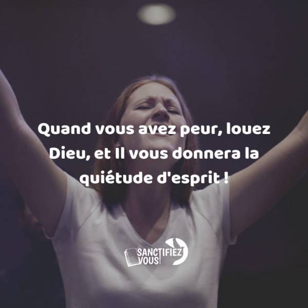 Quand vous êtes dans l'anxiété, la peur, tournez vos regards sur Dieu. Au lieu de vous lamenter, louez-Le avec un cœur sincère, reconnaissant pour Ses bienfaits pour ce qu'Il a déjà réalisé pour vous. Faites-Lui confiance et vous verrez comment Il fera de grands prodiges pour vous.