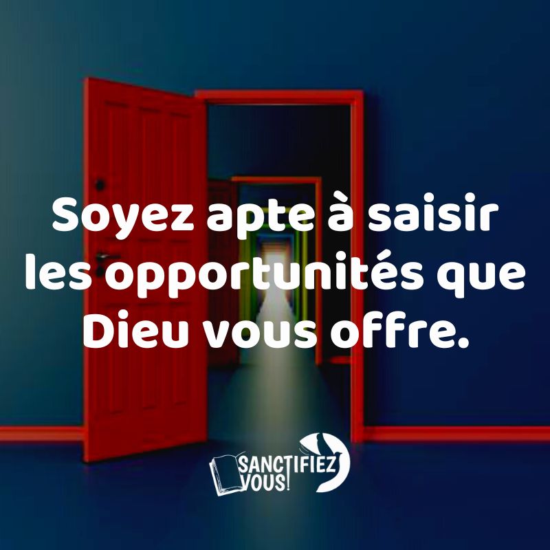 À retenir : Toute opportunité est une fortune pour qui peut la saisir. Elle est dans le dessein de Dieu afin de vous affranchir de votre captivité, ne la laissez pas passer.