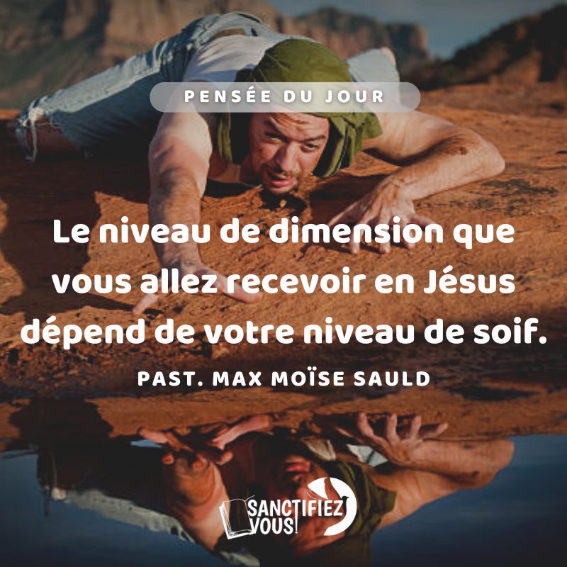 Le niveau de dimension que vous allez recevoir en Jésus dépend de votre niveau de soif. Past. Max Moïse SAULD