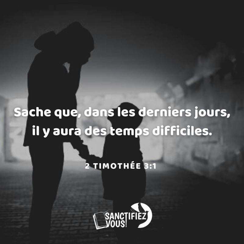 Sache que, dans les derniers jours, il y aura des temps difficiles. 2 Timothée 3:1