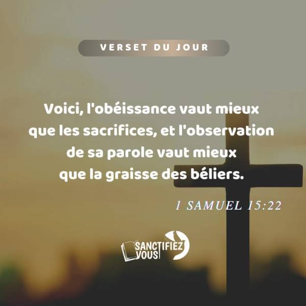 Voici, l'obéissance vaut mieux que les sacrifices, et l'observation de sa parole vaut mieux que la graisse des béliers. 1 Samuel 15:22 Vèsè jounen an 📖Pito yon moun fè sa Senyè a di l' fè a pase pou l' touye bèt ofri pou BonDye. Pito yon moun soumèt devan BonDye pase pou l' ofri bèl... Lire la Suite →