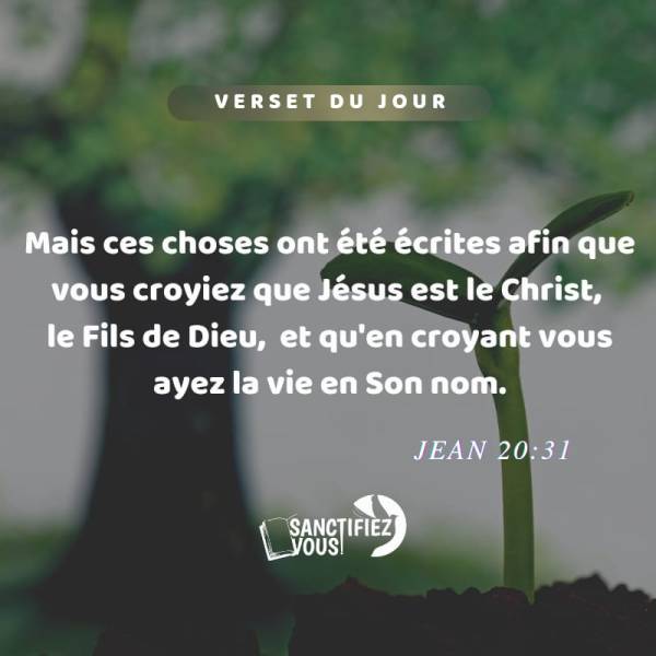 Mais ces choses ont été écrites afin que vous croyiez que Jésus est le Christ, le Fils de Dieu, et qu'en croyant vous ayez la vie en Son nom. Jean 20:31 Vèsè jounen an 📖Tou sa ki ekri nan Liv sa a, mwen ekri yo pou nou ka kwè Jezi se Kris la, Pitit BonDye,... Lire la Suite →