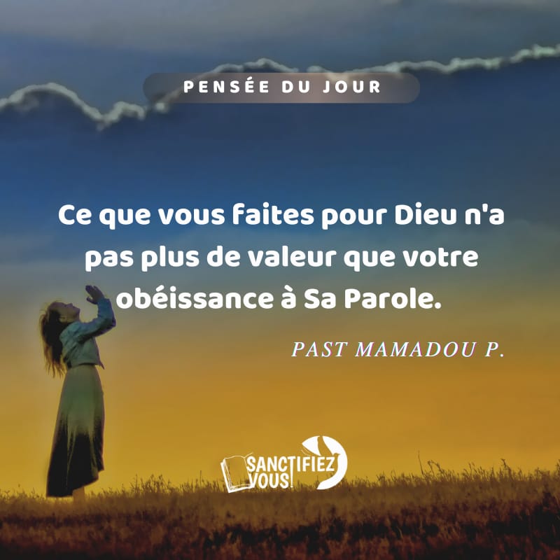 Ce que vous faites pour Dieu n’a pas plus de valeur que votre obĂ©issance Ă Sa Parole. Past Mamadou P.